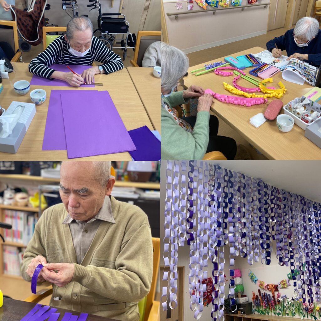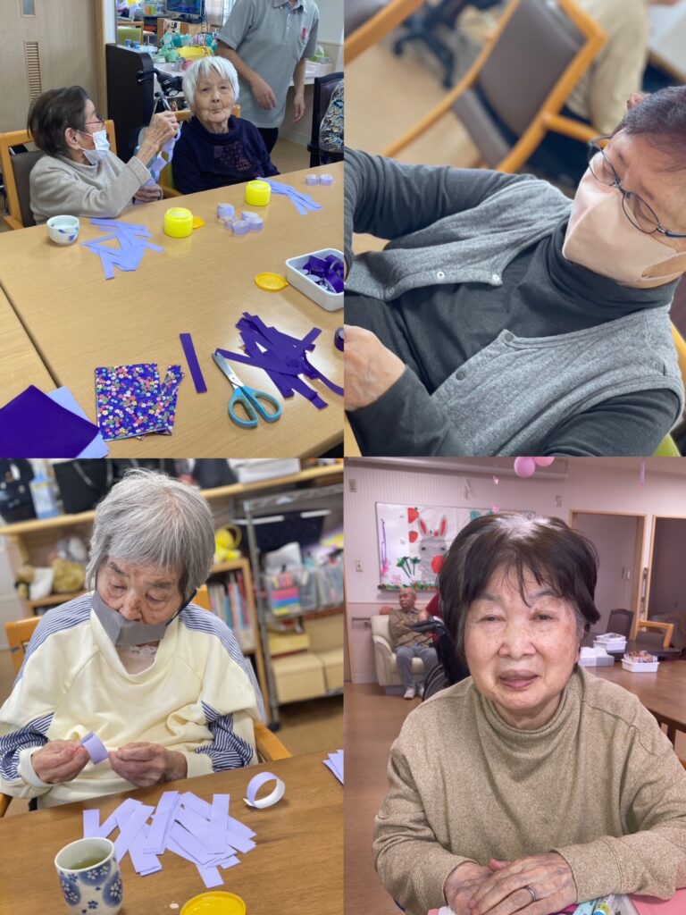 ブログ 壁画作成🖼 2025.09.30 5月の壁画を作成して頂きました(^^)/ 藤色の色紙、折り紙で作成して頂きました(*^_^*) Tweet Share お食事レク🍱と花しょうぶ内飾り付け🌸 前の記事 フルーツ白玉 次の記事
